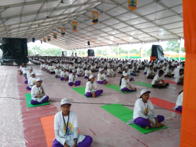 5th International Yoga Day was celebrated zealously in various parts of India. The main event was held in Ranchi and the Prime Minister of India, Mr.Narendra Modi led a crowd of over 40,000 people, who attended this event there. The theme of this year's event was "Yoga for Heart". At this event, the prime minister addressed the people of India, stressing upon the importance of Yoga for the overall health of body, mind, society, and even our climate, saying "Let our motto be - Yoga for peace, harmony, and progress". He also said that the government would be working to make Yoga a pillar of the 'preventive healthcare and wellness' system. Around 1000 participants, after a month long practice, gathered at Lukshmi Vilas Palace of Vadodara, on 20 June 2019, to perform 108 sun salutations which began at 4:30 a.m. till 6:10 a.m. non-stop to celebrate the 5th International Yoga Day.